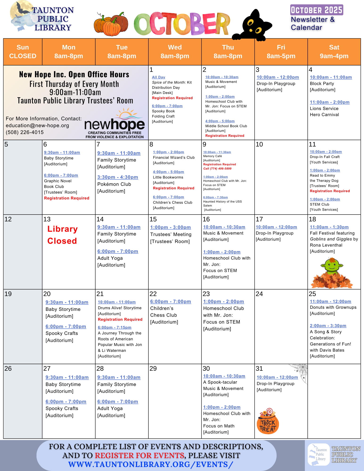 We offer storytimes, playgroups, book clubs,